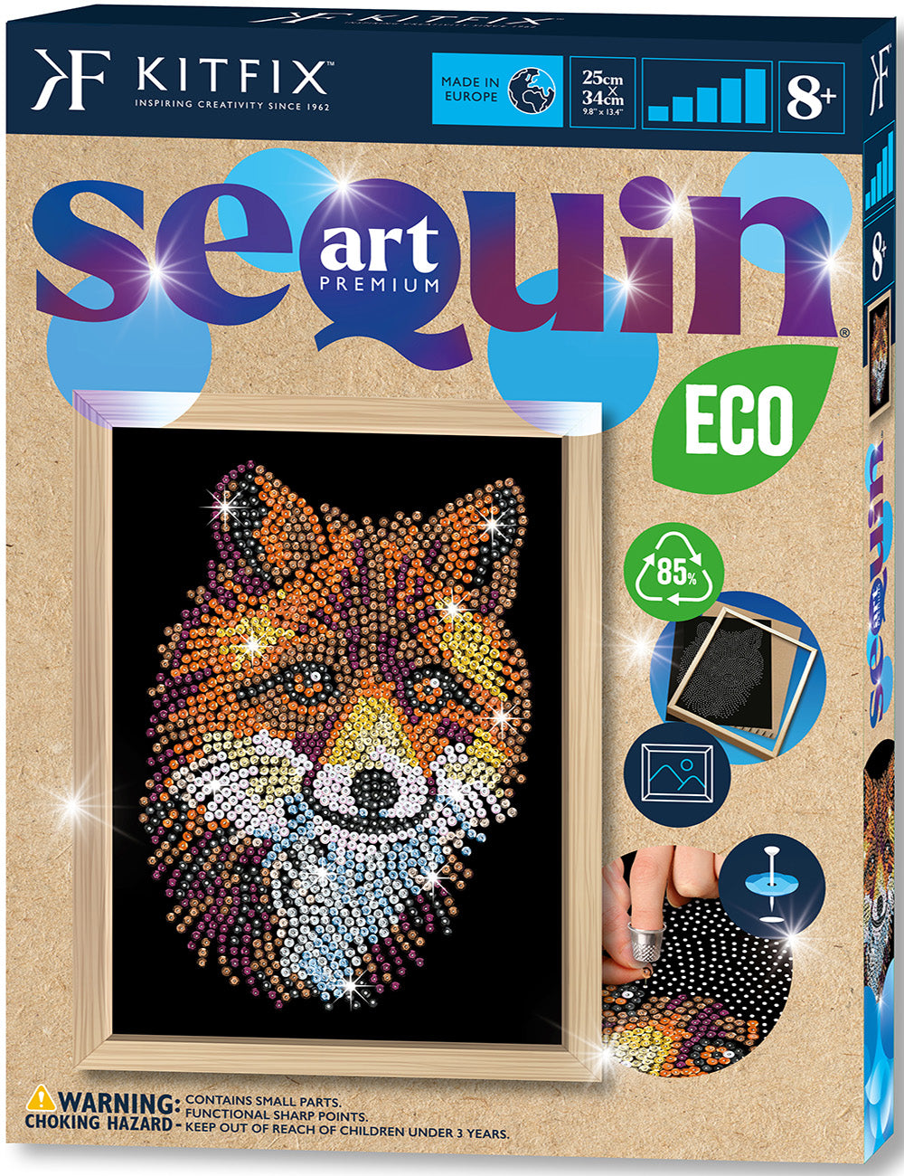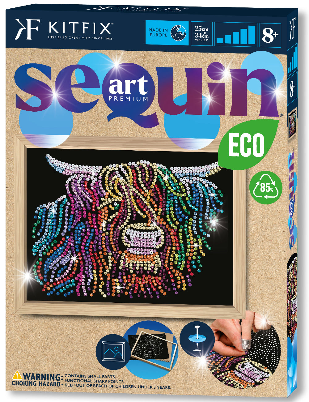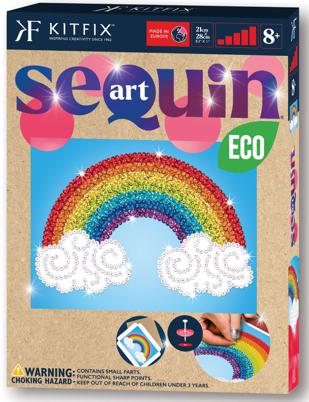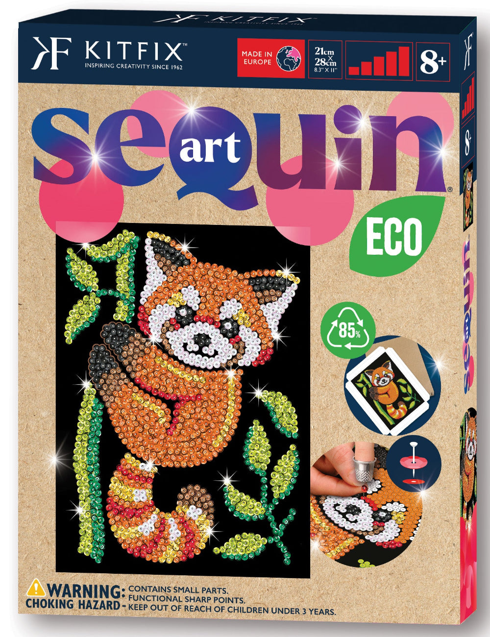 Providing eco-friendly fun for beginners with the same dazzling designs and array of bright colours as our standard Red range. With a sustainable cardboard base, sequin application requires a little more skill, making this range appropriate for the aged 8+. But with a little bit of guidance, even our younger crafters create masterpieces.
