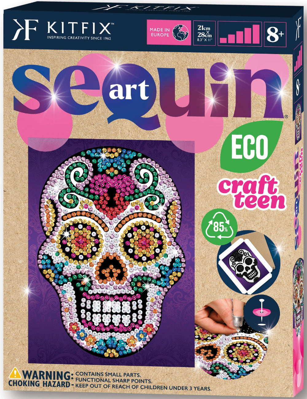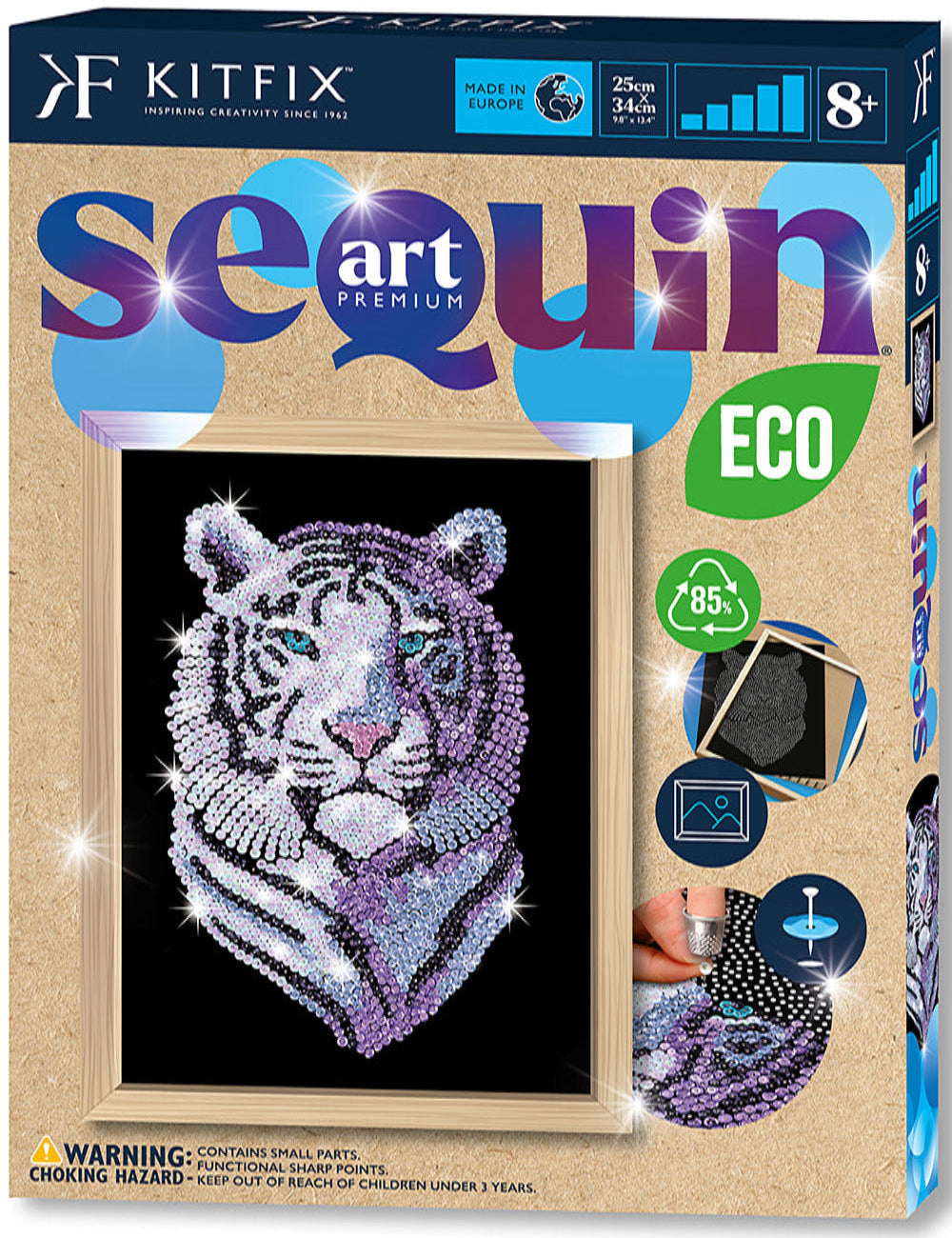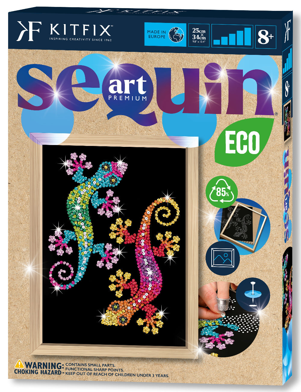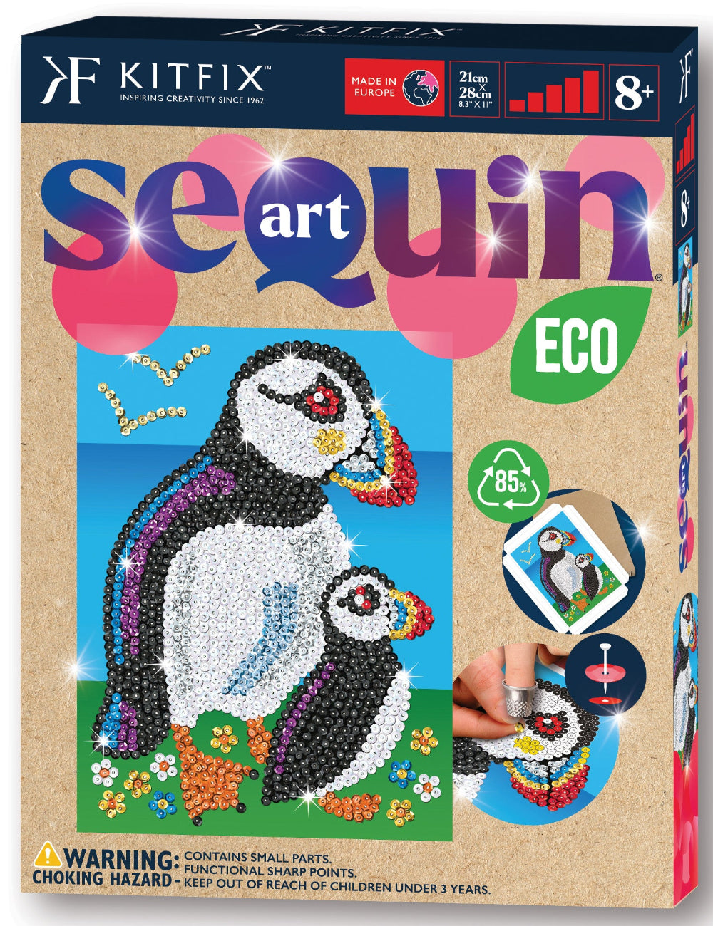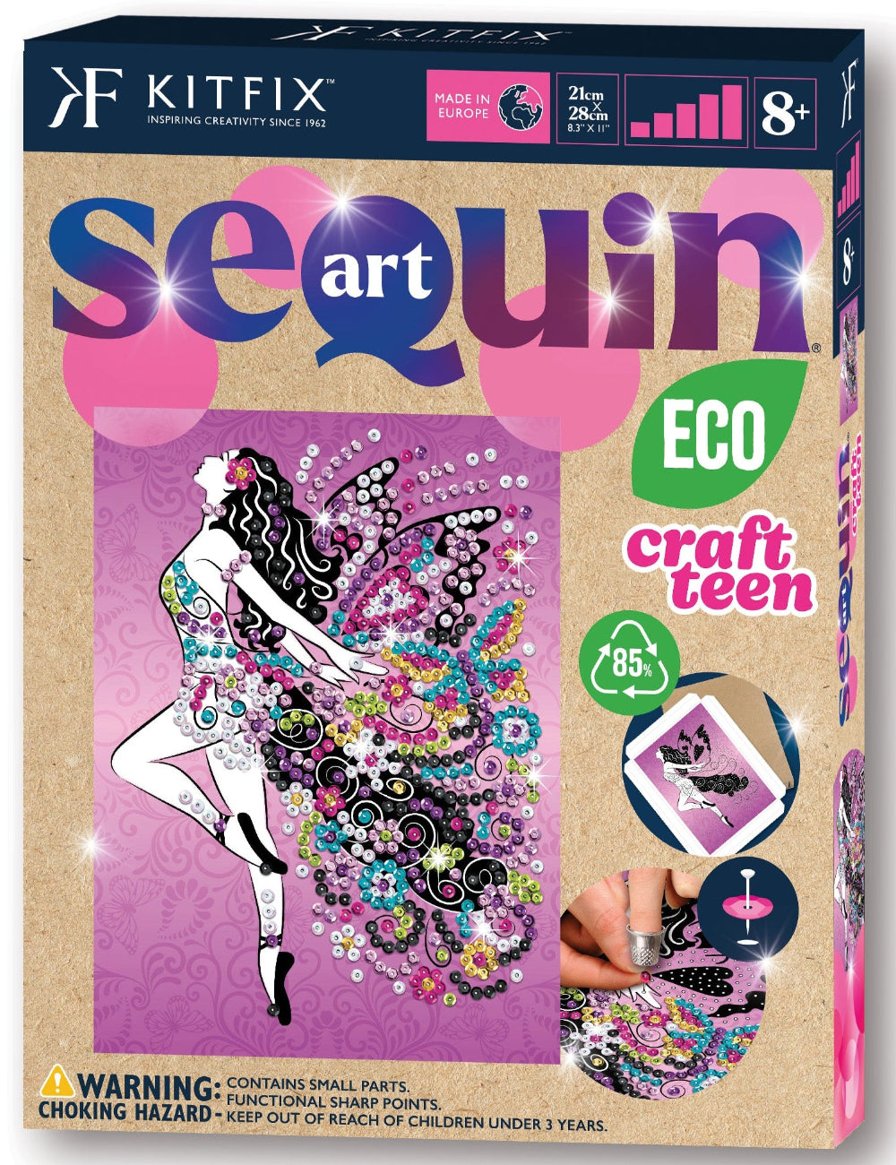Providing eco-friendly fun for beginners with the same dazzling designs and array of bright colours as our standard Red range. With a sustainable cardboard base, sequin application requires a little more skill, making this range appropriate for the aged 8+. But with a little bit of guidance, even our younger crafters create masterpieces.
