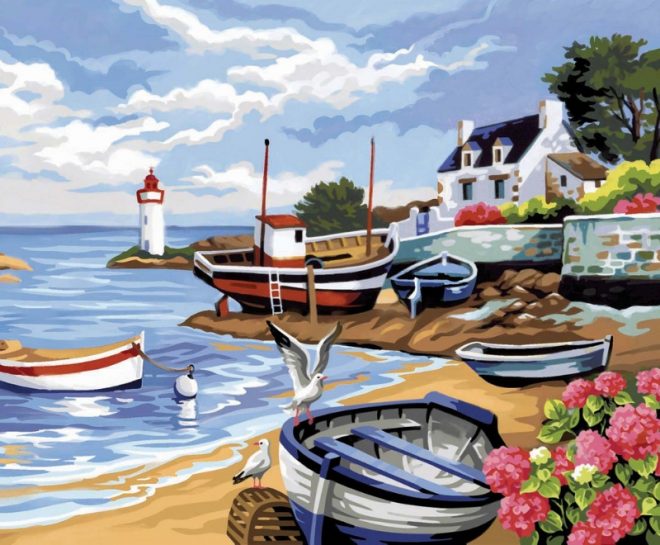 This Senior Painting By Numbers craft features a beautiful Fishing Village design.