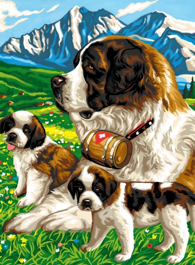 This Junior painting By Numbers craft features an utterly adorable picture of St Bernards dogs.