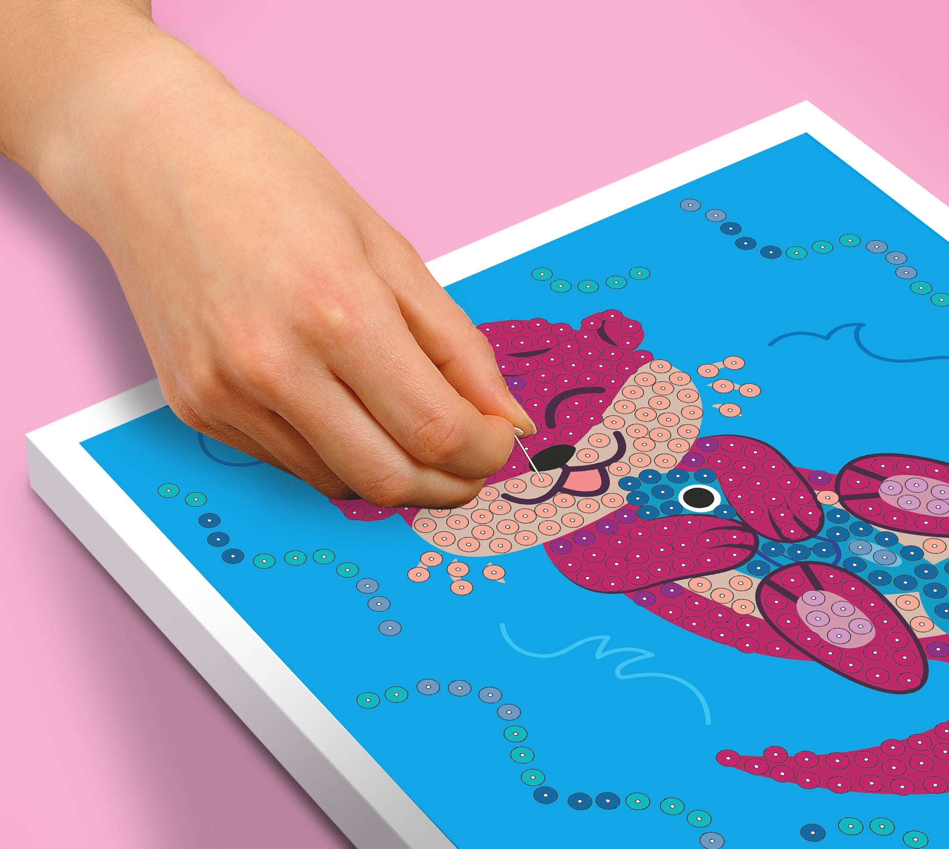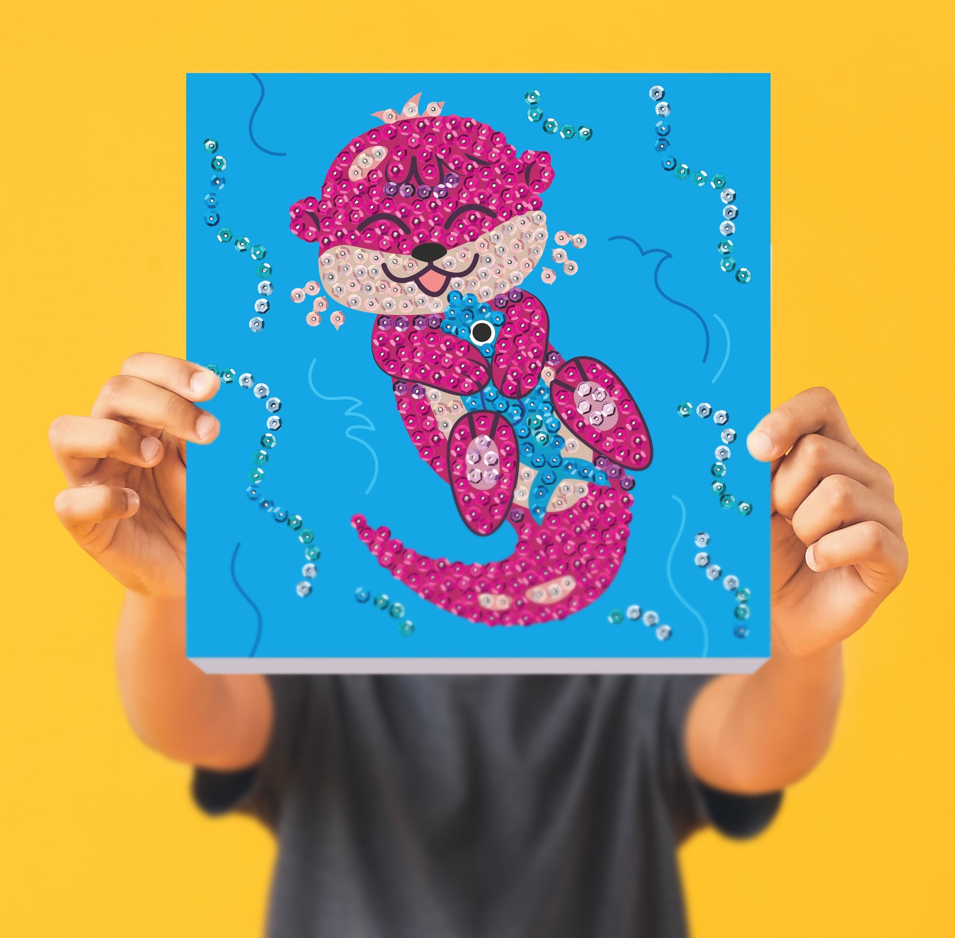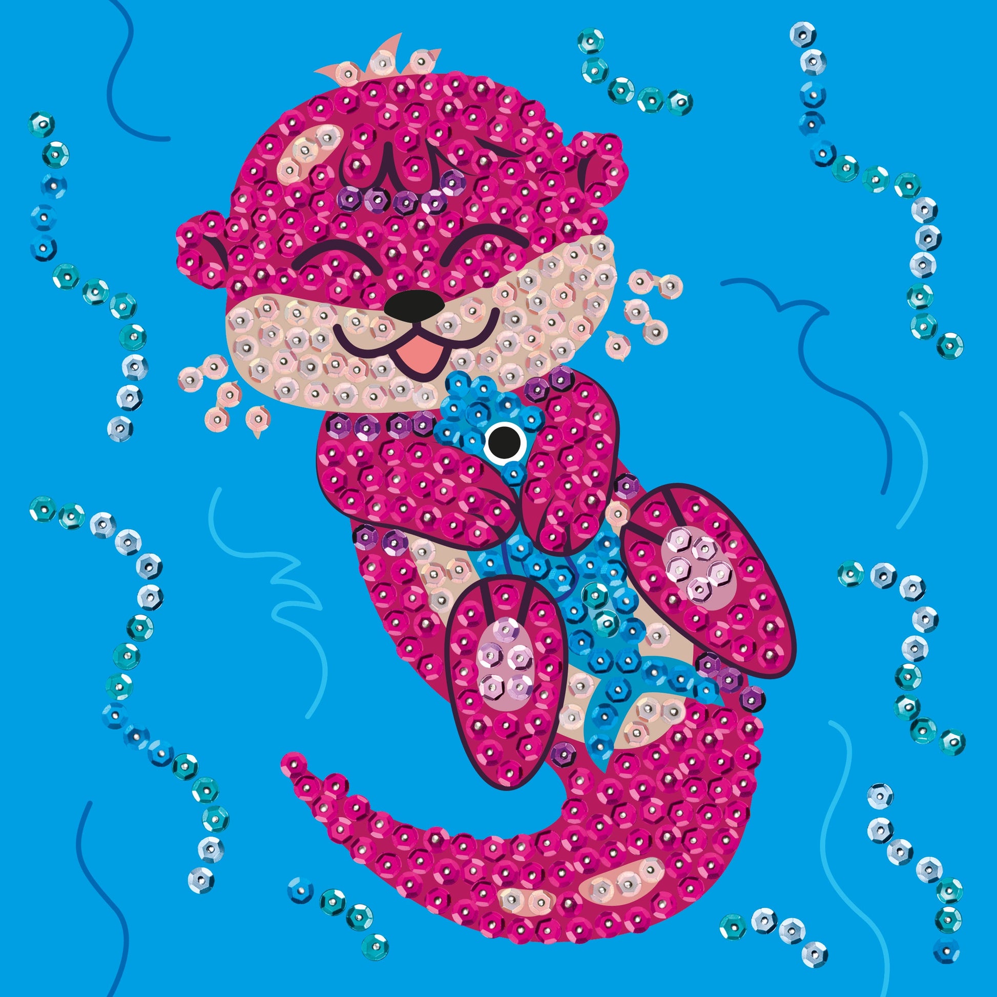 The Otter Sequin Art craft kit from the 60 range, including a polystyrene base, coloured picture, coloured sequins, pins, instructions