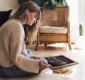 Premium by name, premium by design with a luxurious flocked velvet background and solid European pine frame to set off your masterpiece to perfection.